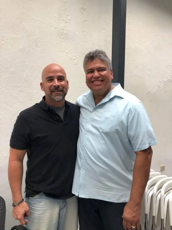 Armando Rios and Melvin pose for a photo after the workshop. Armando has a foundation called Rompiendo Cadenas.